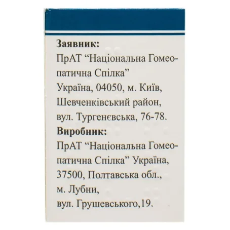 Виробник/заявник. ПрАТ «Національна Гомеопатична Спілка».