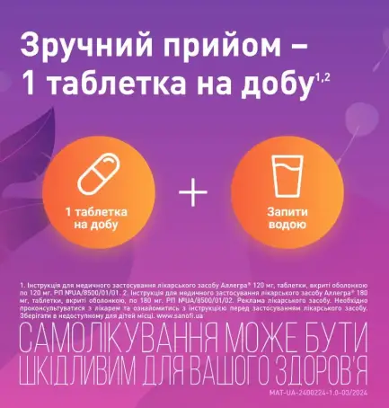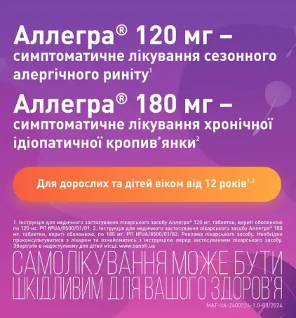 Рекомендуемая доза фексофенадина гидрохлорида для взрослых и детей старше 12 лет составляет 180 мг в сутки в один прием, то есть одна таблетка 180 мг 1 раз в сутки.