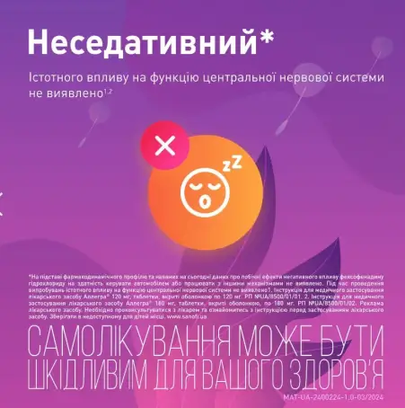 Фексофенадина гидрохлорид - действующее вещество препарата является Неседативные антигистаминным средством группы антагонистов специфических рецепторов Н1. Эффект препарата по устранению пузырьков и зуда кожи проявляется в течение 1:00 после приема и продолжается 24 часа. Препарат не влияет на психомоторные функции и скорость реакции, поэтому при его приеме можно управлять автомобилем и выполнять работу, требующую концентрации внимания.