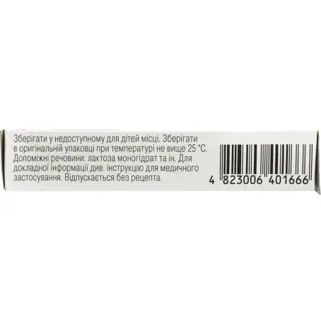 вспомогательные вещества: лактоза моногидрат, крахмал кукурузный, целлюлоза микрокристаллическая, кремния диоксид коллоидный безводный, кислота стеариновая.