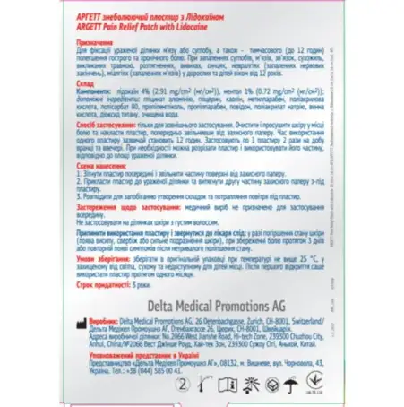 Аргетт Форте обезболивающий пластырь с Лидокаином применена технология гидрогелевого нанесения ментола и лидокаина для максимального действия и временного облегчения боли в спине, шее, конечностях, мышцах и суставах.