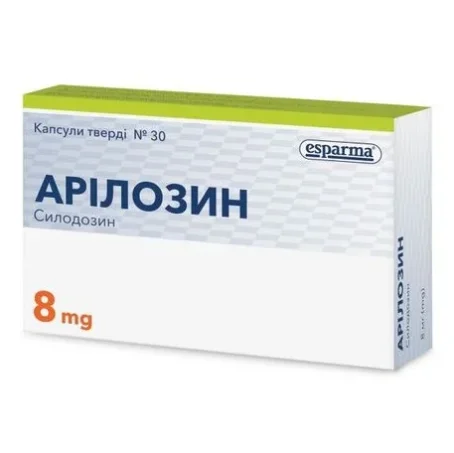 1 капсула содержит 4 мг или 8 мг силодозина;