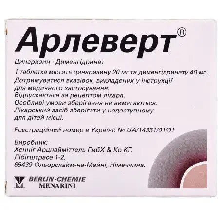 Симптоматическое лечение головокружения разного генеза. Арлеверт показан взрослым пациентам.