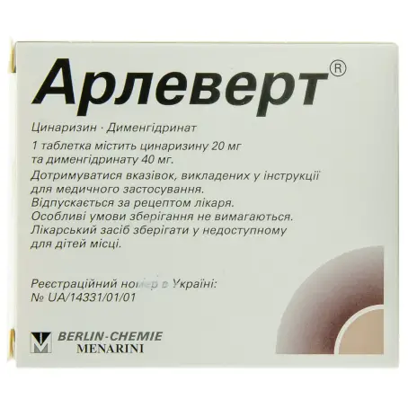 Симптоматическое лечение головокружения разного генеза. Арлеверт показан взрослым пациентам.