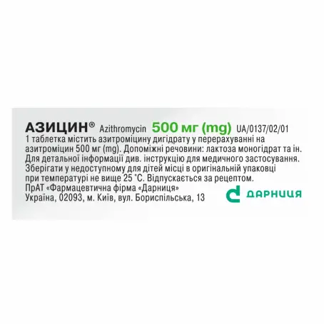 Фармакокинетика.Биодоступность азитромицина после перорального приема составляет приблизительно 37%. Максимальная концентрация в сыворотке крови достигается через 2-3 часа после приема лекарственного средства. При приеме внутрь азитромицин распределяется по всему организму. Фармакокинетические исследования показали, что концентрации азитромицина в тканях значительно выше (в 50 раз), чем в плазме крови, что свидетельствует о сильном связывании лекарственного средства с тканями.