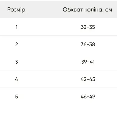 Обхват колена, см 33-35 36-38 39-41 42-45 46-49