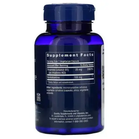 Бенфотиамин - вещество похожее по действию на тиамин, он, после всасывания из тонкого кишечника, в клетках приобретает коферментную форму под названием тиаминдифосфат (ТДФ). Ваше тело нуждается в теамине для синтеза аденозинтрифосфата (АТФ), который каждая клетка тела использует для получения энергии. Симптомы дефицита тиамина - это усталость, раздражительность, депрессия и дискомфорт в животе. Люди с дефицитом тиамина также испытывают проблемы с перевариванием углеводов. Тиамин способствует нормализации функции нервной системы, участвует в углеводном обмене (как кофермент), восполняет дефицит витамина В1 (тиамина).
