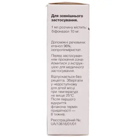 Розчин для шкіри 1%, 15 мл, 35 мл флакони-крапельниці або 25 мл розпилювач з дозатором № 1