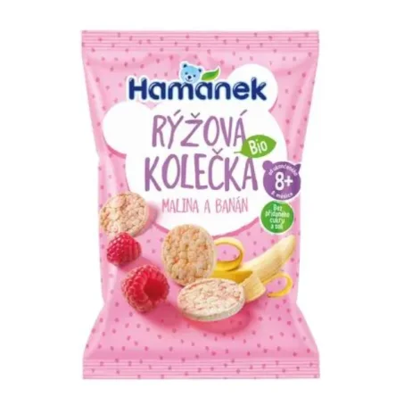 Ищете полезный и вкусный перекус для ребенка? Попробуйте органические рисовые хлебцы малины и банан бренда Hamanek.