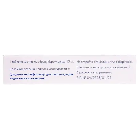 Буспирон не предназначен для лечения симптомов абстиненции, обусловленных применением бензодиазепинов или других седативных/снотворных средств. Поэтому до начала лечения буспироном следует постепенно прекратить применение этих препаратов. Это особенно касается пациентов, принимающих лекарственные средства, подавляющие ЦНС. Буспирон не следует использовать в качестве монотерапии при лечении депрессии, поскольку он может маскировать клинические симптомы депрессии.