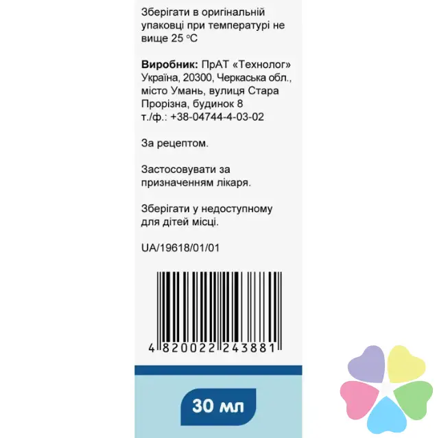 Основные физико-химические свойства: прозрачный, бесцветный или почти бесцветный раствор.