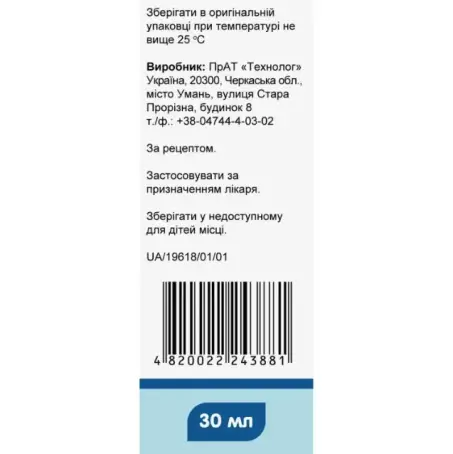 По 30 мл во флаконе; по 1 флакону с дозировочным шприцем в картонной пачке.