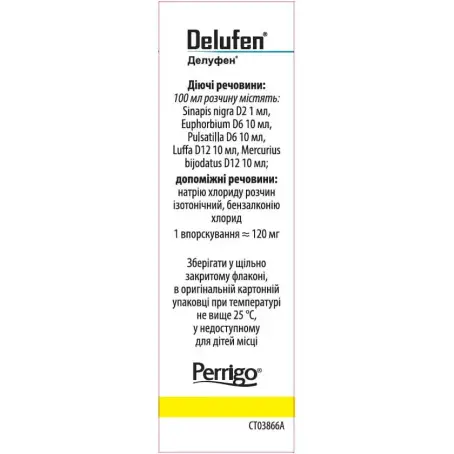 Поскольку ДЕЛУФЕН®, назальный спрей, содержит растительные и другие природные компоненты, при хранении может наблюдаться незначительное изменение прозрачности или цвета раствора, что не приводит к снижению качества и эффективности препарата.