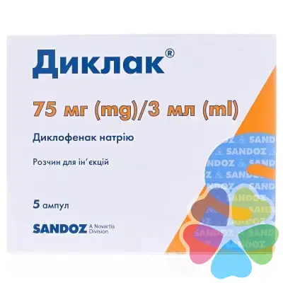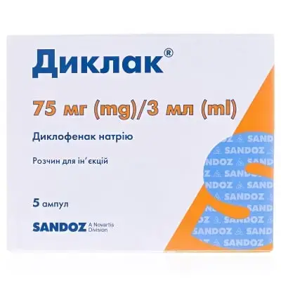 3 мл раствора содержат 75 мг диклофенака натрия (25 мг/мл);