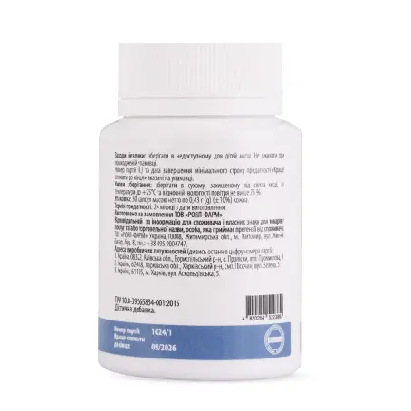 Упаковка:30 капсул массой нетто по 0,43 г (+10%) каждая.