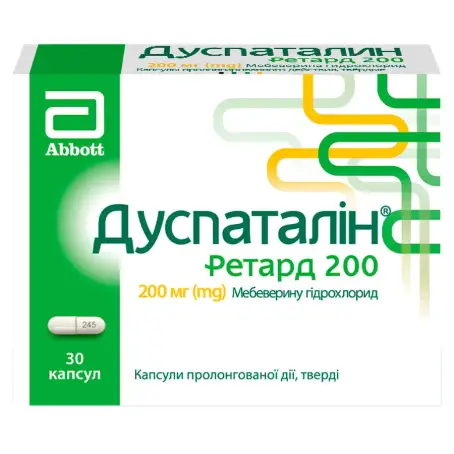 Дети.Не следует применять Дуспаталин® Ретард 200 детям в возрасте до 3 лет из-за отсутствия клинических данных по данной возрастной категории. Не следует применять Дуспаталин® Ретард 200, капсулы 200 мг, детям от 3 до 10 лет из-за высокого содержания действующего вещества.