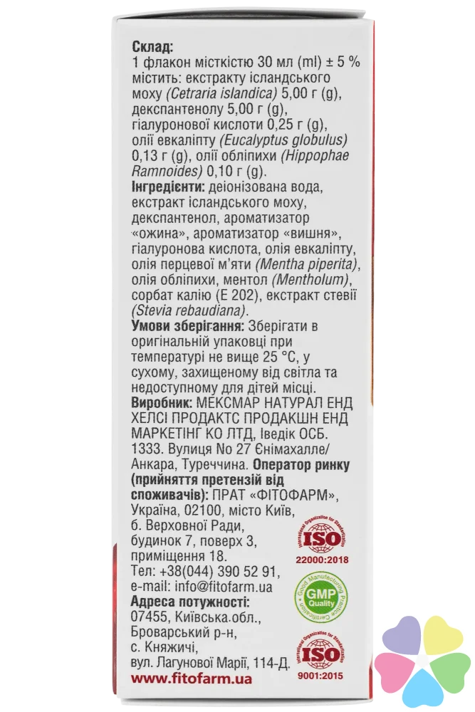 Оператор рынка (принятие претензий от потребителей): ЧАО «ФИТОФАРМ», Украина, 02100, город Киев, б. Верховной Рады, дом 7, этаж 3, помещение 18.