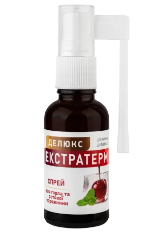 Экстратерм Делюкс спрей (со вкусом вишни), 30 мл во флак. можно купить в наших аптеках сейчас здесь: Ужвий, Златоустовская 50, Черновола, Кудряшова, Дримтаун 2, Детская клиническая, Вильямса, Святослава Храброго 7, Драгомирова 14, Софиевская Борщаговка, Тимошенко 29, Евромісто, Щасливый, Старонаводницкая, Метрологическая 14Б, Медиком, метро Осокорки, Драгоманова, Семьи Кульженко, Петровский квартал, Аболмасова 6, Французский квартал, Доброхотова, Хмельницкого 66, Выставочный центр, Respublika, Университетская, Виноградарь, Уютный, Феофания, Сечевых стрелков 55, Садовая, Верхогляда, Blockbuster, Воздушных сил, Европейская, Кульпарковская