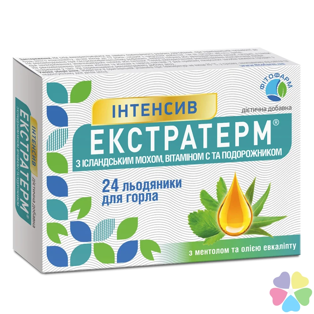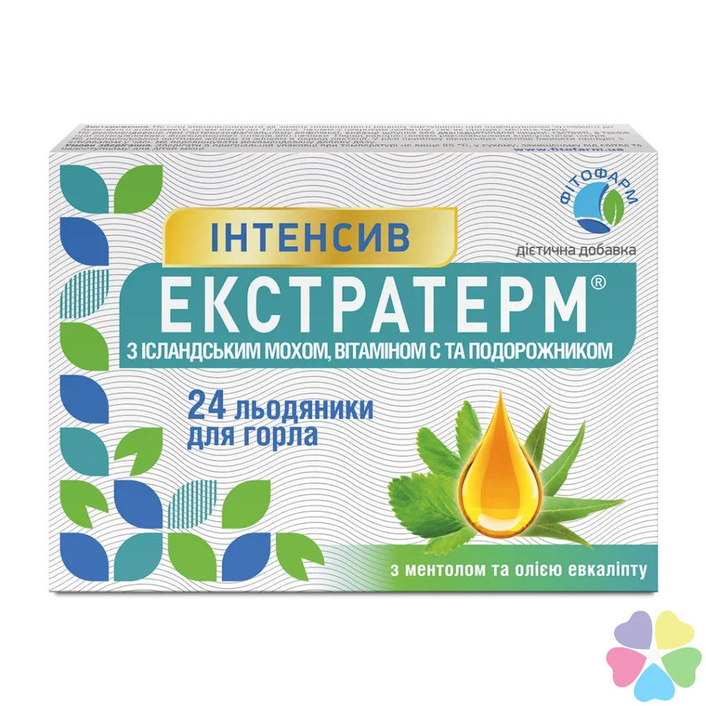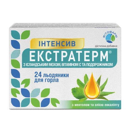 Экстратерм Интенсив с исландским мхом, витамином С и подорожником леденцы, №24 можно купить в наших аптеках сейчас здесь: Ужвий, Милославская, Речная, Времена Года, Драгомирова 14а, Комфортаун, Добробут, Зверинецкая, Тимошенко 29, Евромісто, Щасливый, возле Позняков, Адонис, метро Осокорки, Франка 6, Бассейна 23, Наше NEBO, 37, Аболмасова 6, Французский квартал, Доброхотова, Хмельницкого 66, The Lakes, Ирпень, Французский квартал-2, Бажана 10, Львов, Чабани, Ипподром, Липки, Грінвіль, Парк Авеню, Воздушных сил, Европейская, Кульпарковская, Малоголосківські пагорби