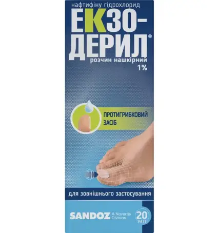Экзодерил - противогрибковое средство класса аллиламина. Его активным ингредиентом является гидрохлорид нафтифина, механизм действия которого связан с ингибированием действия эргостерола.