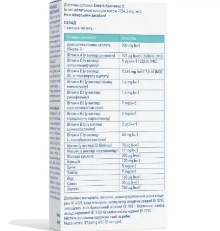СоставВ составе каждой капсулы Элевит-комплекс 3 содержатся следующие компоненты: