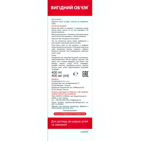 Ванна для детей и младенцев: в наполненную водой детскую ванну налить 15 мл (ml) средства (1/2 мерного колпачка).