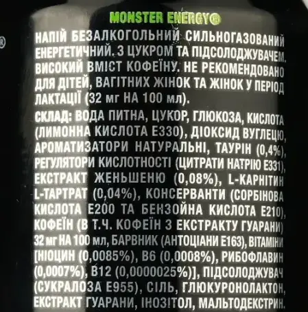 Энергетический безалкогольный напиток Monster Energy 500 мл можно купить в наших аптеках сейчас здесь: Святослава Храброго 7,  С,  Народного Ополчения 7,  5 роддом, Крюковщина,  Евромісто, Семьи Кульженко,  37,  ЖК Яскравий,  ТЦ Полярный, Палладина,  Окружная,  Доброхотова