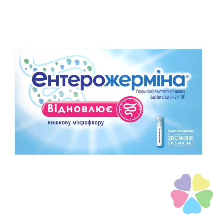 ФармакодинамикаПрепарат Энтерожермина® - суспензия спор 4 штаммов (SIN, O/C, T, N/R) Bacillus clausii, обычно присутствующих в кишечнике и не проявляющих патогенной активности.