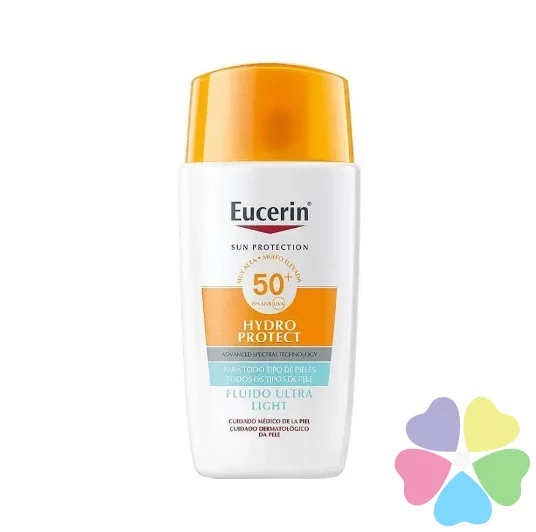 Ультрафиолетовый свет является основной причиной повреждения кожи, вызванного солнцем, но видимый свет высокой энергии (HEVIS) также может вызвать свободные радикалы, вызывающие дополнительный стресс для кожи. Eucerin Sun Face Hydro Protect Ultra-Light Fluid SPF 50+ это ежедневный солнцезащитный флюид с гидротехническим комплексом, который обеспечивает мгновенное увлажнение и ощущение свежести кожи, что защищает от повреждений кожи, вызванных солнечными лучами.