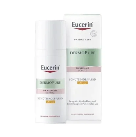 Следы от прыщей могут потемнеть, особенно на загрязненной коже, если кожа подвергается воздействию солнечных лучей без защиты. Защитный флюид от Eucerin защищает кожу от так называемой послевоспалительной гиперпигментации. Для этого средство ухода за лицом имеет фактор защиты от солнца SPF30, чтобы предотвратить образование новых пятен от прыщей. Имеет нежирную и некомедогенную формулу. Флюид идеально подходит для ежедневного использования и как солнцезащитный крем для проблемной, жирной и склона к акне и постакне (поспальной гиперпигментации) кожи лица. Подходит для взрослых с 14 лет
