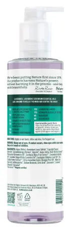 СоставAqua (Water), Ammonium Lauryl Sulfate*, Caprylyl/Capryl Glucoside*, Cocamidopropyl Betaine*, Glycerin*, Avena Sativa (Oat) Kernel Extract**, Pelargonium Graveolens Oil*, Sambucus Nigra Fruit Extract**, Lavandula ucalyptus Globulus Leaf Oil*, Tilia Cordata Flower Extract**, Citrus Aurantium Dulcis (Orange) Peel Oil*, Maris Sal (Sea Salt), Anthocyanins*, Sodium Benzoate, Citric Acid*, Limonene*, Linool* sub>
