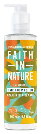 Наш лосьон для рук и тела с грейпфрутом и апельсином из линейки натуральных лосьонов для тела Faith In Nature, все из которых богаты витаминами, антиоксидантами и минералами, одобрены The Vegan Society, не тестируются на животных и изготовлены из ингредиентов высочайшего качества природного.