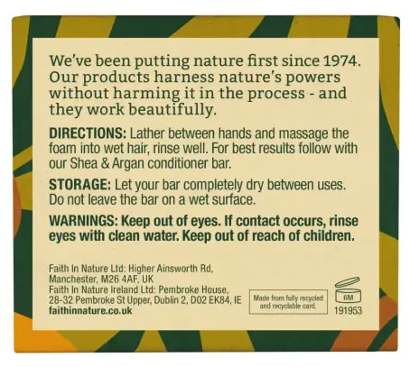 Узнайте большеНаш твердый шампунь из ши и органой из линейки натуральных твердых шампуней Faith In Nature, все из которых богаты антиоксидантами, витаминами и минералами, одобренными The Vegan Society, не тестируются на животных и изготовлены из ингредиентов высочайшего качества природного происхождения.