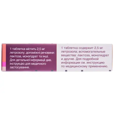 1 таблетка содержит 2,5 мг летрозола;