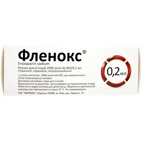 2000 анти-Ха МЕ/0,2 мл, что эквивалентно эноксапарину натрия 20 мг;