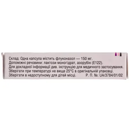 Состав: 1 капсула содержит флуконазол 150 мг (FLUCONAZOLUM).