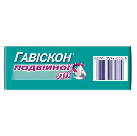 Взаимодействие с другими лекарственными средствами и другие виды взаимодействияВ связи с наличием кальция карбоната, который действует как антацид, необходимо выдерживать 2-часовой интервал между приемом Гавискона двойного действия, суспензии оральной и приемом других лекарственных средств, особенно Н2-антигистаминных препаратов, тетрациклинов, дигоксина, дигоксина, кетоконазола, нейролептиков, тироксина, пеницилламина, бета-блокаторов (атенолол, метопролол, пропанолол), глюкокортикоидов, хлорохина, дифосфонатов и эстрамустина.