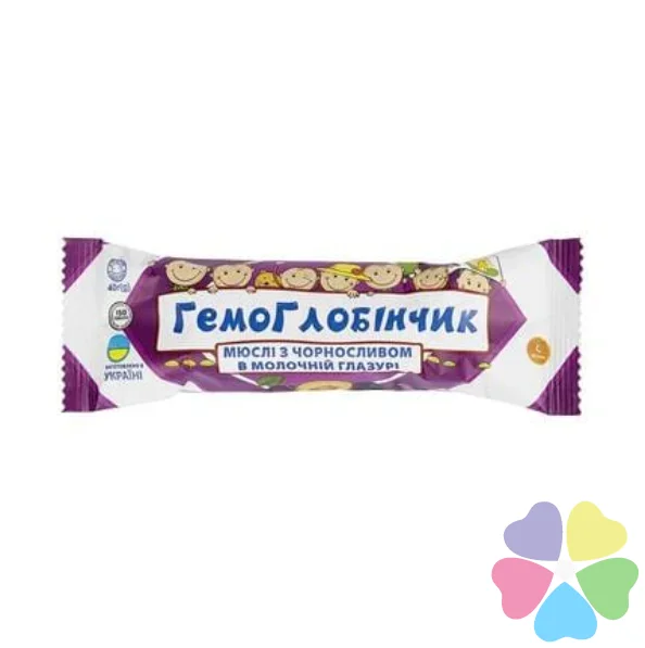 Батончик-мюсли Гемоглобинчик с черносливом в молочной глазури, по 40 г в пленке можно купить в наших аптеках сейчас здесь: Драгоманова