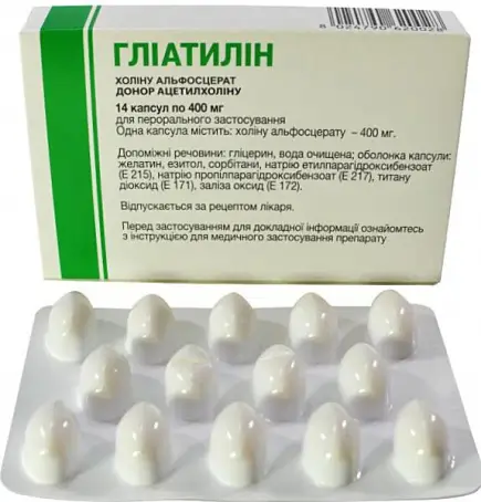 Состав: 1 капсула содержит холина альфосцерата 400 мг; (Cholini alfosceras)