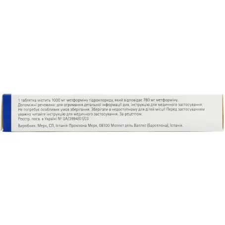 1 таблетка, покрытая пленочной оболочкой, по 1000 мг содержит 1000 мг гидрохлорида метформина, который соответствует 780 мг метформина;