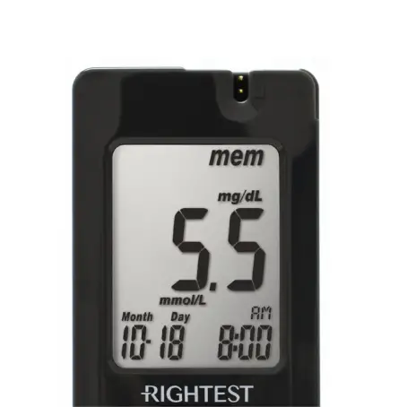 • Большой дисплей с логическими подсказками делает глюкометр Rightest ELSA простым в использовании