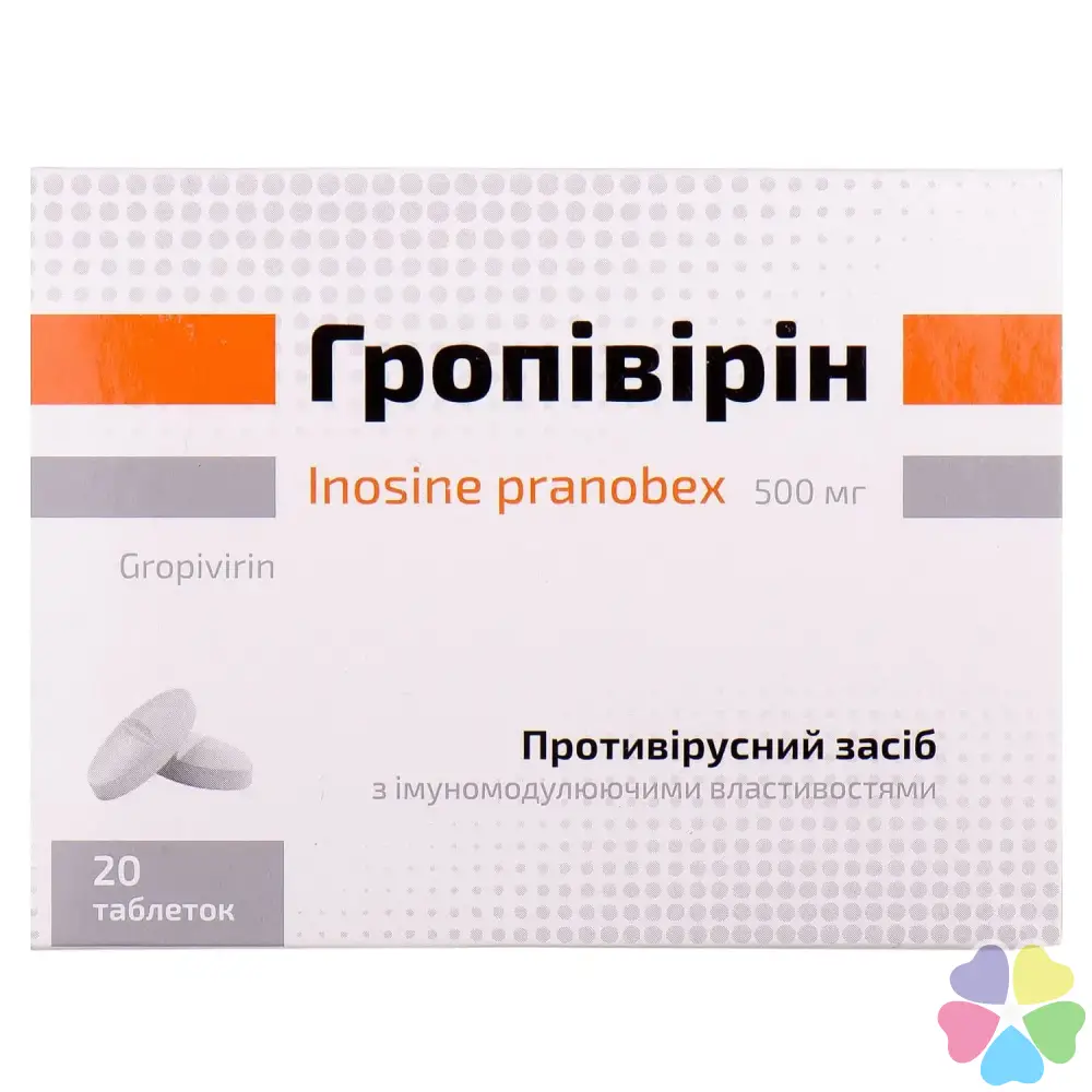 Гропивирин - противовирусное средство с иммуномодулирующими свойствами. Препарат нормализует (до индивидуальной нормы) дефицит или дисфункцию клеточного иммунитета, индуцируя созревание и дифференцировку Т-лимфоцитов и Т1-хелперов, потенцируя индукцию лимфопролиферативного ответа в митогенных или антигенактивных клетках. Гропивирин моделирует цитотоксичность Т-лимфоцитов и натуральных киллеров, функцию Т8-супрессоров и Т4-хелперов, а также увеличивает количество иммуноглобулина G и поверхностных маркеров комплимента. Гропивирин увеличивает синтез интерлейкина-1 (IL-1) и синтез интерлейкина-2 (IL-2), регулирует экспрессию рецепторов IL-2. Гропивирин существенно увеличивает секрецию эндогенного гамма-интерферона и уменьшает продуцирование интерлейкина-4 в организме. Гропивирин усиливает действие нейтрофильных гранулоцитов, хемотаксиса и фагоцитоза моноцитов и макрофагов. Гропивирин ингибирует синтез вируса путем встраивания инозиноротовой кислоты в полирибосомы пораженной вирусом клетки и ингибирует присоединение адениловой кислоты к вирусной и-РНК.