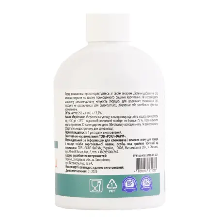 Ответственный за информацию для потребителя и владелец знака для товаров и услуг и/или торгового названия, лицо, принимающее претензии от потребителя: ООО «РОЯЛ-ФАРМ», Украина, 10008, Житомирская обл., г. Житомир, ул. Ржаной Базар, дом. 8, тел. +380959004747.