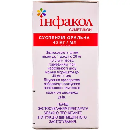 Применять детям до 1 года по 20 мг (0,5 мл) перед каждым кормлением, при необходимости дозу можно повысить до 40 мг (1 мл). Лечение Инфаколом обеспечивает постепенное улучшение симптомов в течение нескольких дней. Продолжительность лечения зависит от наличия жалоб и определяется индивидуально.