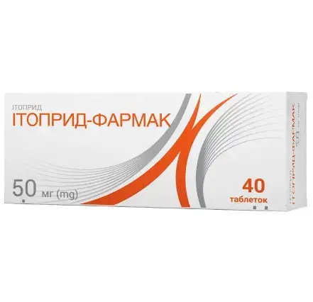 Абсорбция. Итоприд гидрохлорид быстро и практически полностью всасывается из желудочно-кишечного тракта. Его относительная биодоступность составляет 60%, что связано с эффектом первого прохождения через печень. Пища не влияет на биодоступность. После применения 50 мг гидрохлорида итоприда Сmax достигается через 0,5 - 0,75 часа и составляет 0,28 мкг/мл. При дальнейшем применении лекарственного средства в дозах от 50 до 200 мг 3 раза в сутки в течение 7 дней фармакокинетика гидрохлорида итоприда и его метаболитов была линейной с минимальной кумуляцией.
