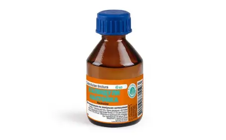 Составдействующее вещество: 1 флакон содержит настойки цветков календулы (Calendulae flores) (1 : 10)