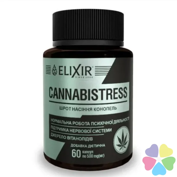 Диетическая добавка содержит комплекс из триптофана, шрота из семян конопли, магния, ашваганды, валерианы, пустырника и витаминов группы В и является мощным многокомпонентным продуктом для борьбы со стрессом.