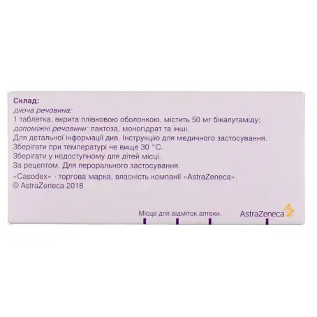 Абсорбция Касодекс хорошо всасывается при пероральном приеме. Доказательства клинически значимого влияния еды на биодоступность препарата отсутствуют. Касодекс имеет высокую степень связывания с белками (рацемат 96%, (R)-энантиомер > 99%) и подвергается интенсивному метаболизму (путем окисления и глюкуронизации) ; его метаболиты выводятся почками и желчью примерно в одинаковом количестве.