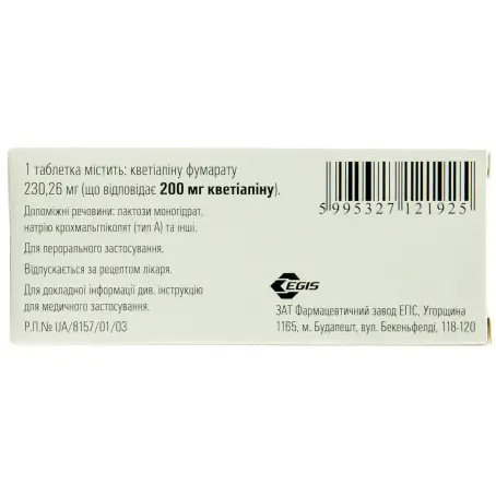 действующее вещество: кветиапин; 1 таблетка содержит 28,78 мг, 115,13 мг и 230,26 мг кветиапина фумарата, что соответствует 25 мг, или 100 мг или 200 мг кветиапина; другие составляющие: целлюлоза микрокристаллическая, лактозы моногидрат, крахмалгликолят натрия (тип А), повидон, магния стеарат, кремния диоксид коллоидный безводный; состав оболочки: Opadry II 33G28523 белый (гипромелоза, диоксид титана (Е 171), лактозы моногидрат, макрогол, триацетин); Opadry II 33G24283 розовый (для таблеток 200 мг) (гипромеллоза, титана диоксид (Е 171), лактозы моногидрат, макрогол, триацетин, железа оксид красный (Е 172), железа оксид желтый (Е 172)).