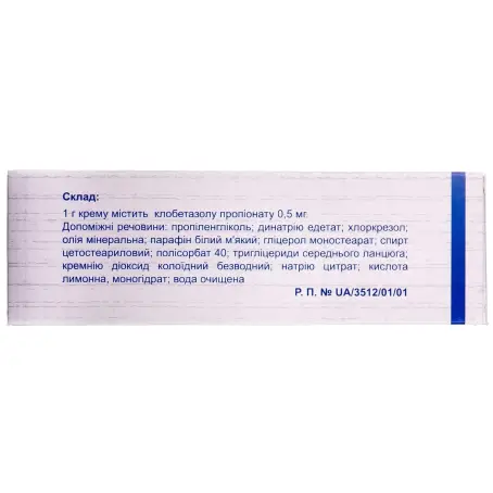 1 г крема содержит клобетазола пропионата 0,5 мг;